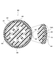 そして、工程Bに示されるように、二次成形品成形工程では、二次成形用溶融樹脂22を二次成形用金型62内に注入し、一次成形品41の外周面に接する二次成形品42を形成する。つまり、一次成形品41の周囲に円環状の二次成形品42を形成する。この二次成形品42は、開閉方向(二次成形品42の軸方向)に動く二次成形用金型62のみで成形可能な形状である。
