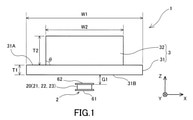 磁気シールド3は、第1面31A及び第1面31Aに対向する第2面31Bを有し、平面視略長方形状の第1磁気シールド31と、第1磁気シールド31の第1面31A上であって、第1磁気シールド31の短手方向における略中央に位置する第2磁気シールド32とを含む。第1磁気シールド31及び第2磁気シールド32は、一体化されているものであってもよいし、別体のものであってもよい。