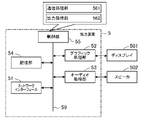オーディオ処理部53は、スピーカ502と接続されている。オーディオ処理部53は、制御部55から出力される各種音声情報に従って、各種音声をスピーカ502に出力(再生)させる。
