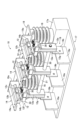 図2は、第1の実施の形態に係る接地開閉器の閉路状態の概略斜視図である。図2にも示すように、可動子12において、一対のブレード部材12aは、連結板12gによって基端側において連結されて一体化されている。連結板12gの図2中上端側では、上から見てコ字状の磁性部材30が2体支持されている。磁性部材30は、鉄材等の磁性体によって構成され、接圧ばね12cよりブレード部材12aの基端側に設けられる。