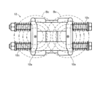 固定子54は、平板状の接続部55の下面に対し、第1の実施の形態における可動子12の先端側と同様の構造を設けて構成される。固定子54は、下側を開放する一対のブレード部材(導電体)54aを備えている。一対のブレード部材54aの先端側では、相互に接近する方向に膨らむ接触部54bが形成され、かかる接触部54bが可動子12の頭部12hを挟み込みつつ接触する。そして、固定子54は、一対のブレード部材54aに相互に接近する方向の力を加える構成として、第1の実施の形態と概略同一構造の接圧ばね12c、ボルト12d、ナット12e、連結筒12f、連結板12gを有している。