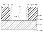 本変形例では、上記の図21に示す工程において、図28に示すように、TiN膜120をコンタクトホール21の側面21bにのみに形成してもよい。この後、図29に示すように、TiN膜120、コンタクトホール21の底面21a及び絶縁膜20を覆うSi膜130をスパッタリングにより形成する。この後、図30に示すように、コンタクトホール21の底面21aよりも狭い領域のSi膜130の上に、レジストパターン153を形成し、レジストパターン153の形成されていない領域のSi膜130を除去する。この後、上記と同様の工程(ステップS5~S9)を行うことにより、図31に示されるように、コンタクトホール21の底面21aにおいて、第1の電極142bと第2の電極142cとが互いから離れて形成される。