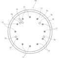 サセプタ74は基台リング71に設けられた4個の連結部72によって支持される。図3は、サセプタ74の平面図である。また、図4は、サセプタ74の断面図である。サセプタ74は、保持プレート75、ガイドリング76および複数の基板支持ピン77を備える。保持プレート75は、石英にて形成された略円形の平板状部材である。保持プレート75の直径は半導体ウェハーWの直径よりも大きい。すなわち、保持プレート75は、半導体ウェハーWよりも大きな平面サイズを有する。