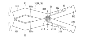 以上、第1保持部3Aおよび第2保持部3Bについて説明した。ただし、第1保持部3Aおよび第2保持部3Bの構成は、特に限定されない。例えば、第1保持部3Aおよび第2保持部3Bは、芯材2の中心軸まわりに回転することができなくてもよい。また、第1保持部3Aおよび第2保持部3Bは、芯材2に対して芯材2の長手方向に移動可能であってもよい。また、トーションばね33の数は、1つであってもよいし、3つ以上であってもよい。