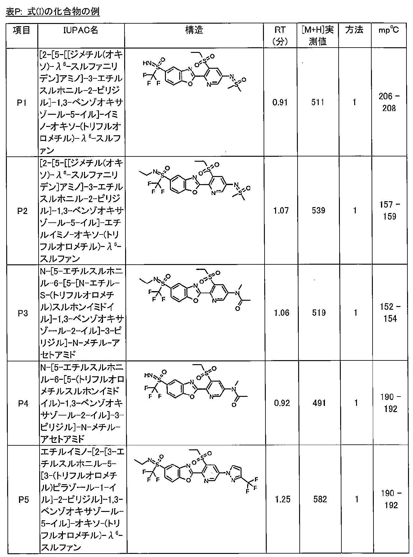 表A-1~A-96、表C-1~C-96、表E-1~E-96、表F-1~F-96、表G-1~G-96及び表H-1~H-96並びに表Pから選択される式Iの化合物と、上記の有効成分との有効成分混合物は、表A-1~A-96、表C-1~C-96、表E-1~E-96、表F-1~F-96、表G-1~G-96及び表H-1~H-96並びに表Pから選択される化合物及び上記の有効成分を好ましくは100:1~1:6000、特に50:1~1:50の混合比、より特に20:1~1:20、さらにより特に10:1~1:10、非常に特に5:1及び1:5の比率で(2:1~1:2の比率が特に好ましく、4:1~2:1の比率が同様に好ましい)、とりわけ1:1、又は5:1、又は5:2、又は5:3、又は5:4、又は4:1、又は4:2、又は4:3、又は3:1、又は3:2、又は2:1、又は1:5、又は2:5、又は3:5、又は4:5、又は1:4、又は2:4、又は3:4、又は1:3、又は2:3、又は1:2、又は1:600、又は1:300、又は1:150、又は1:35、又は2:35、又は4:35、又は1:75、又は2:75、又は4:75、又は1:6000、又は1:3000、又は1:1500、又は1:350、又は2:350、又は4:350、又は1:750、又は2:750、又は4:750の比率で含む。それらの混合比は、重量基準である。