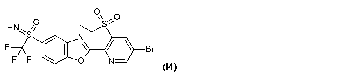 1-[5-エチルスルホニル-6-[1-メチル-5-(トリフルオロメチルスルファニル)ベンゾイミダゾール-2-イル]-3-ピリジル]シクロプロパンカルボニトリル(上記のように調製した中間体I20)(1.00g、2.14mmol)の2,2,3,3,4,4,5,5-オクタフルオロペンタン-1-オール(10mL)溶液にカルバミン酸アンモニウム(0.427g、5.36mmol)、それに続いて(ジアセトキシヨード)ベンゼン(2.11g、6.43mmol)を室温で加えた。反応混合物を室温で16時間撹拌し、次いで氷冷水(50mL)でクエンチし、酢酸エチル(3×100mL)で抽出した。合わせた有機層をチオ硫酸ナトリウム溶液(50mL)、それに続いてブライン(50mL)で洗浄し、硫酸ナトリウムで乾燥させ、濾過し、真空中で濃縮した。粗生成物をcombiflash(シリカゲル、シクロヘキサン中の35%酢酸エチル)によって精製し、1-[5-エチルスルホニル-6-[1-メチル-5-(トリフルオロメチルスルホンイミドイル)ベンゾイミダゾール-2-イル]-3-ピリジル]シクロプロパンカルボニトリルを白色の固体として得た。LCMS(方法1):Rt=0.95分、m/z=498(M+H)