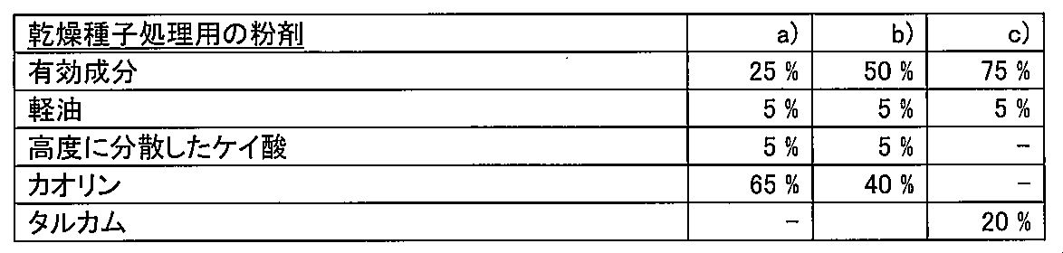 有効成分の後ろの角括弧における参照番号、例えば[3878-19-1]は、ケミカルアブストラクツ登録番号を意味する。上記の混合の相手は、公知である。有効成分は、“The Pesticide Manual”[The Pesticide Manual-A World Compendium;Thirteenth Edition; Editor:C.D.S.Tomlin;英国作物保護協議会(The British Crop Protection Council)]に含まれている場合、それらは、特定の化合物について上記において丸括弧中に示される項目番号でその中に記載されており;例えば、「アバメクチン」という化合物は、項目番号(1)で記載されている。「[CCN]」が上記において特定の化合物に付加されている場合、該当する化合物は、“Compendium of Pesticide Common Names”に含まれており、それは、インターネット上でアクセス可能であり[A.Wood;Compendium of Pesticide Common Names,(著作権)1995-2004];例えば、「アセトプロール」という化合物は、インターネットアドレス:http://www.alanwood.net/pesticides/acetoprole.htmlに記載されている。
