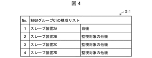 さらに、例えば、制御グループC1では、1つのスレーブ装置2Aが情報処理装置3からの上記設定情報Siを予め保持することによって、当該制御グループC1でのネットワーク機器2Nを構成するようになっている。そして、このネットワーク機器2Nは、マスタ装置1に代えて、制御グループC1の構成リストに登録されたスレーブ装置2B、2C、2Dを監視し、いずれかのスレーブ装置2に異常が生じたときに、制御グループC1の構成リストの全てのスレーブ装置2の少なくとも一部の動作を停止させるように構成されている(詳細は後述)。