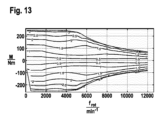 第2の好ましい実施形態では、第1の動作領域および/または第2の動作領域および/または第3の動作領域は、最大全負荷動作まで及ぶことができ、かつ/または基本回転速度動作領域から電力制限動作領域または弱め界磁動作領域内まで及ぶことができる。 In a second preferred embodiment, the first operating region and/or the second operating region and/or the third operating region can extend up to maximum full load operation and/or can extend from the base rotational speed operating region into the power limited operating region or field weakening operating region.