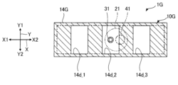 The shapes of the through holes 14c_1 to 14c_3 may be different from each other. The widths of the through holes 14c_1 to 14c_3 may not be constant. The cross-sectional shape of each of the through holes 14c_1 to 14c_3 is not limited to a circle, and may be, for example, a polygon such as a square, as in