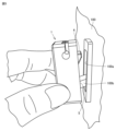 後側の溝部32は、穴部32aに図8で示した紐部30aを引っ掛けることにより、下げ札30が溝部32から吊り下げられるようになっている。前側の溝部33は、図7に示したカード20を差し込むことにより、カード20が溝部33に固定される。カード20は、右側面1eに示されるような段差部33aと接触することで抜けにくく、下方位置の穴部33bで進入するカード20が止まる。