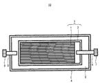 図1は、本発明の電池10を説明する断面図であり、図2は、電池10に備えられる積層体1を説明する断面図である。図2では、積層体1の一部を拡大して示している。図1に示したように、電池10は、積層体1及び該積層体を収容する素電池ケース2を備えた素電池3と、該素電池3を収容する外装電池ケース4と、を有し、素電池ケース2の外側且つ外装電池ケース4の内側には、流体5が充填されている。素電池ケース2には、素電池ケース2内の気体を外部へ放出する際に用いられる気体排出路6が接続されており、素電池ケース2の封止口である気体排出路6の一端は、外装電池ケース4の外側に位置している。外装電池ケース4の外側に位置している気体排出路6の一端(以下において、「気体排出路6の出口」という。)は、封止材7によって封止されている。また、外装電池ケース4には、素電池ケース2の外側且つ外装電池ケース4の内側に流体5を注入する際に用いられる流体注入路8が接続されており、外装電池ケース4の外側に位置している流体注入路8の一端(以下において、「流体注入路8の入口」という。)は、封止材9によって封止されている。
