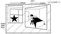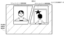前述の実施例1及び2においては三次元映像データ中に1つのコンテンツ映像領域を配置し、この1つのコンテンツ映像領域の周囲を囲うように固定背景画像領域を配置する例を説明したが、本発明はこれに限られることなく、図7から図9ら示す如く、三次元映像データ中に複数のコンテンツ映像領域を配置し、この複数のコンテンツ映像領域の周囲を囲うように固定背景画像領域を配置するように構成しても良い。