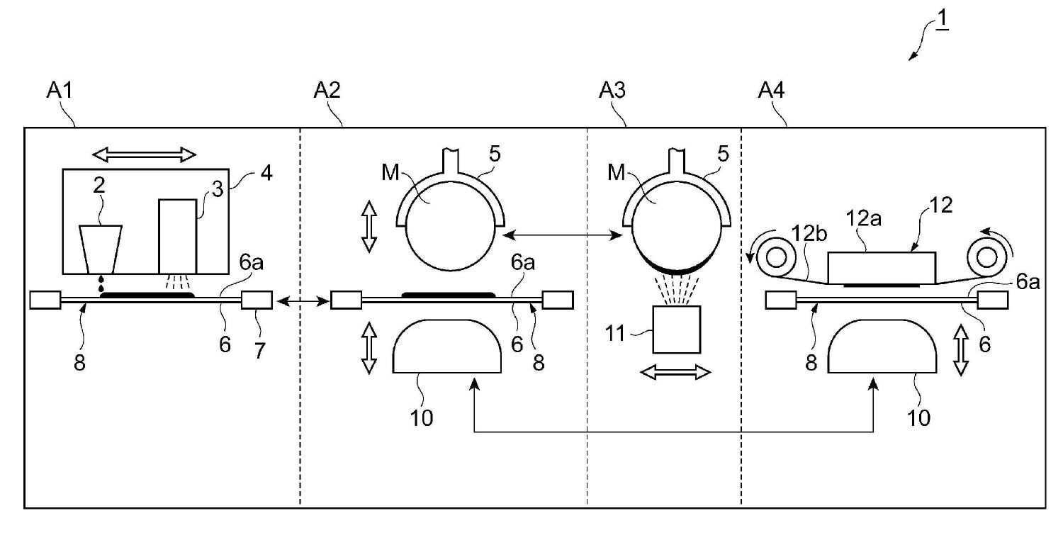 도 3의 (A) 및 (B)는 전사 시트 유닛을 나타내는 도면이고, 도 3의 (A)는 평면도, 도 3의 (B)는 도 3의 (A)에 나타내는 b-b선 단면도(종단면도)이다.