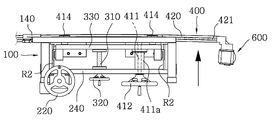 이때, 상기 레일롤러(414)에는 상기 단위레일(420)을 지지하되 상기 톱니(421)가 파손되지 않고 지날 수 있도록 도면에 도시된 바와 같이 홈을 형성하는 것이 바람직하다.At this time, it is preferable that the