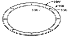 높은 증착 속도로, 예를 들어 2,000 Å/분 이상의 증착 속도로 APFTM, 탄소 함유 실리콘 산화물 또는 DARC와 같은 탄소계(또는 "유기") 막을 증착하는 프로세스는 웨이퍼 중심 영역에 비해 웨이퍼 경사면 영역에서 불균일 증착을 유발할 수 있다. 후속하는 O2 애싱 단계에 의해 완전히 제거되지 않을 경우, 웨이퍼 에지에 있는 부가적 물질은 박리되어 웨이퍼 오염을 유발한다. 따라서, PECVD에 의한 APFTM와 같은 탄소 함유 막의 형성은 본 발명에 따른 쉐도우 링의 일 실시예를 이용하여 바람직하게 달성된다.The process of depositing carbon-based (or “organic”) films such as APF ™ , carbon-containing silicon oxide, or DARC at high deposition rates, for example, at deposition rates above 2,000 mA / min, is uneven in the wafer slope region compared to the wafer center region. May cause deposition. If not completely removed by a subsequent O 2 ashing step, the additional material at the wafer edge will peel off resulting in wafer contamination. Thus, the formation of a carbon containing film such as APF ™ by PECVD is preferably achieved using one embodiment of the shadow ring according to the present invention.