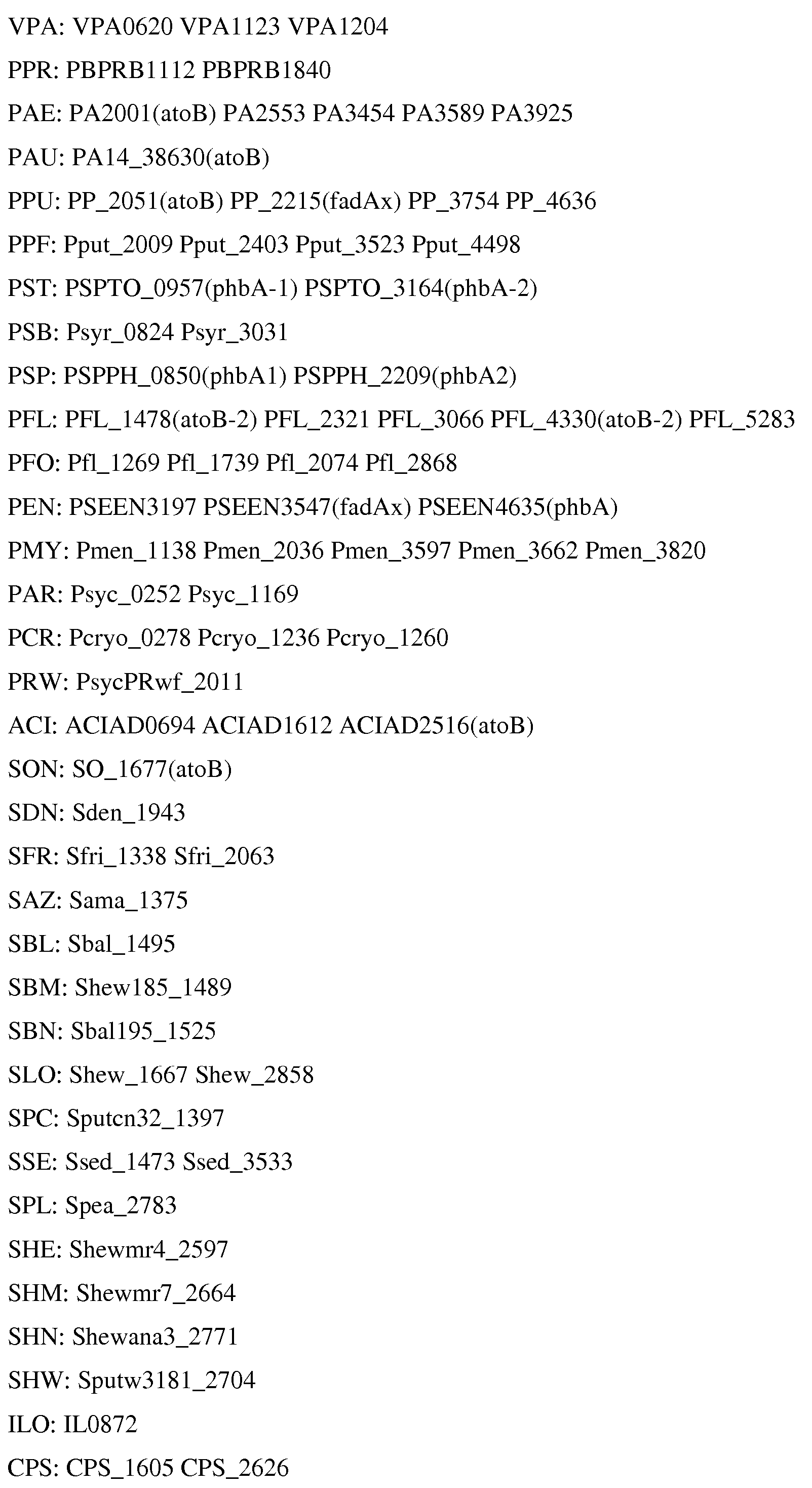 예시적 이소프렌 합성효소, DXS, IDI, 및/또는 MVA 경로 폴리펩티드 및 핵산의 접근 번호는 부록 1 에 나열되어 있다 (부록 1 의 접근 번호 및 상응하는 서열은, 특히 이소프렌 합성효소, DXS, IDI, 및/또는 MVA 경로 폴리펩티드 및 핵산의 아미노산 및 핵산 서열에 대해, 본원에 그 전체가 참조로서 인용되어 있다). Kegg 데이터베이스는 또한 수 많은 예시적 이소프렌 합성효소, DXS, IDI, 및/또는 MVA 경로 폴리펩티드 및 핵산의 아미노산 및 핵산 서열 (예를 들어, 특히 이소프렌 합성효소, DXS, IDI, 및/또는 MVA 경로 폴리펩티드 및 핵산의 아미노산 및 핵산 서열과 관련하여, 전체가 본원에 각각 참조로서 인용된 "genome.jp/kegg/pathway/map/map00100.html" 웹사이트 및 그곳의 서열 참조) 을 함유한다. 일부 구현예에서, 이소프렌 합성효소, DXS, IDI, 및/또는 MVA 경로 폴리펩티드 및/또는 핵산 중 하나 이상은 부록 1 중의 임의의 접근 번호 또는 Kegg 데이터베이스에 존재하는 임의의 서열에 상응하는 임의의 서열과 같은 2007 년 12 월 12 일에 공개적으로 이용가능한 서열과 일치하는 서열을 갖는다. 부가적인 예시적 이소프렌 합성효소, DXS, IDI, 및/또는 MVA 경로 폴리펩티드 및 핵산은 하기에 추가로 기재되어 있다.