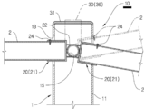 장착작동공(13)의 외측으로 노출되는 가로대장착에셈블리(20)의 가로대장착관(21)에 가로대(2)의 단부를 삽입하여 결합시킨 상태에서 가로대장착관(21)의 측면에 형성된 고정공(23)을 통해 고정볼트(24)를 나사 결합하여 가로대장착관(21)에 삽입(결합)된 가로대(2)의 단부를 억류시켜 준다.