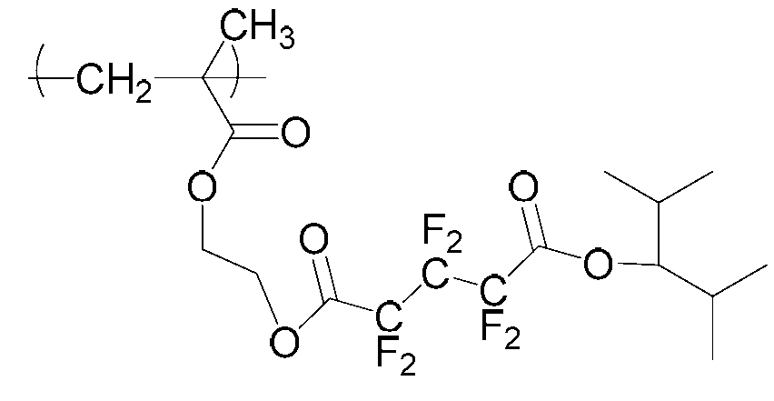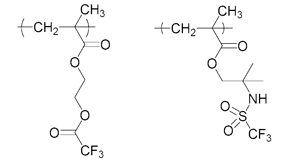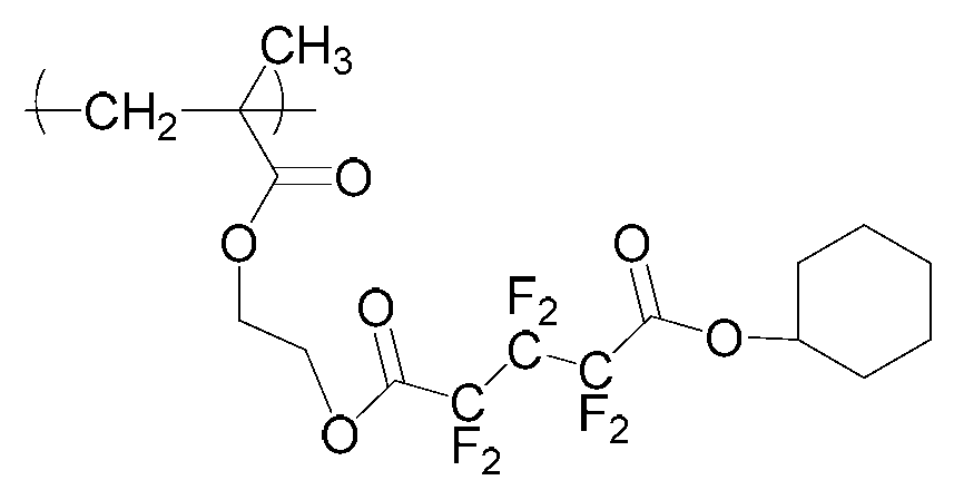 단량체 (W), 단량체 (F), 단량체 (G) 및 단량체 (S)를 몰비 단량체 (W):단량체 (F):단량체 (G):단량체 (S): = 51.7:7.8:23.3:17.2로 함께 혼합하고, 여기에 디옥산을 단량체 총량의 1.5 중량배의 양으로 첨가하여 용액을 얻었다. 여기에 아조비스이소부티로니트릴 및 아조비스(2,4-디메틸발레로니트릴)을 개시제로서 단량체 전량에 대하여 각각 1 몰% 및 3 몰%의 양으로 첨가하고, 얻어진 혼합물을 75℃에서 약 5시간 동안 가열하였다. 그 후, 얻어진 반응 혼합물을 대량의 메탄올과 물의 혼합물에 부어 수지를 침전시켰다. 얻어진 수지를 여과하였다. 이렇게 얻어진 수지를 또다른 디옥산에 용해시켜 용액을 얻고, 용액을 메탄올과 물의 혼합물에 부어 수지를 침전시켰다. 얻어진 수지를 여과하였다. 마지막 두 문장에 기재된 이들 조작을 2회 반복하여, 중량 평균 분자량이 약 7700인 공중합체를 64% 수율로 얻었다. 하기 화학식의 단량체로부터 유도되는 구조 단위를 갖는 이 공중합체를 수지 A22로 하였다.