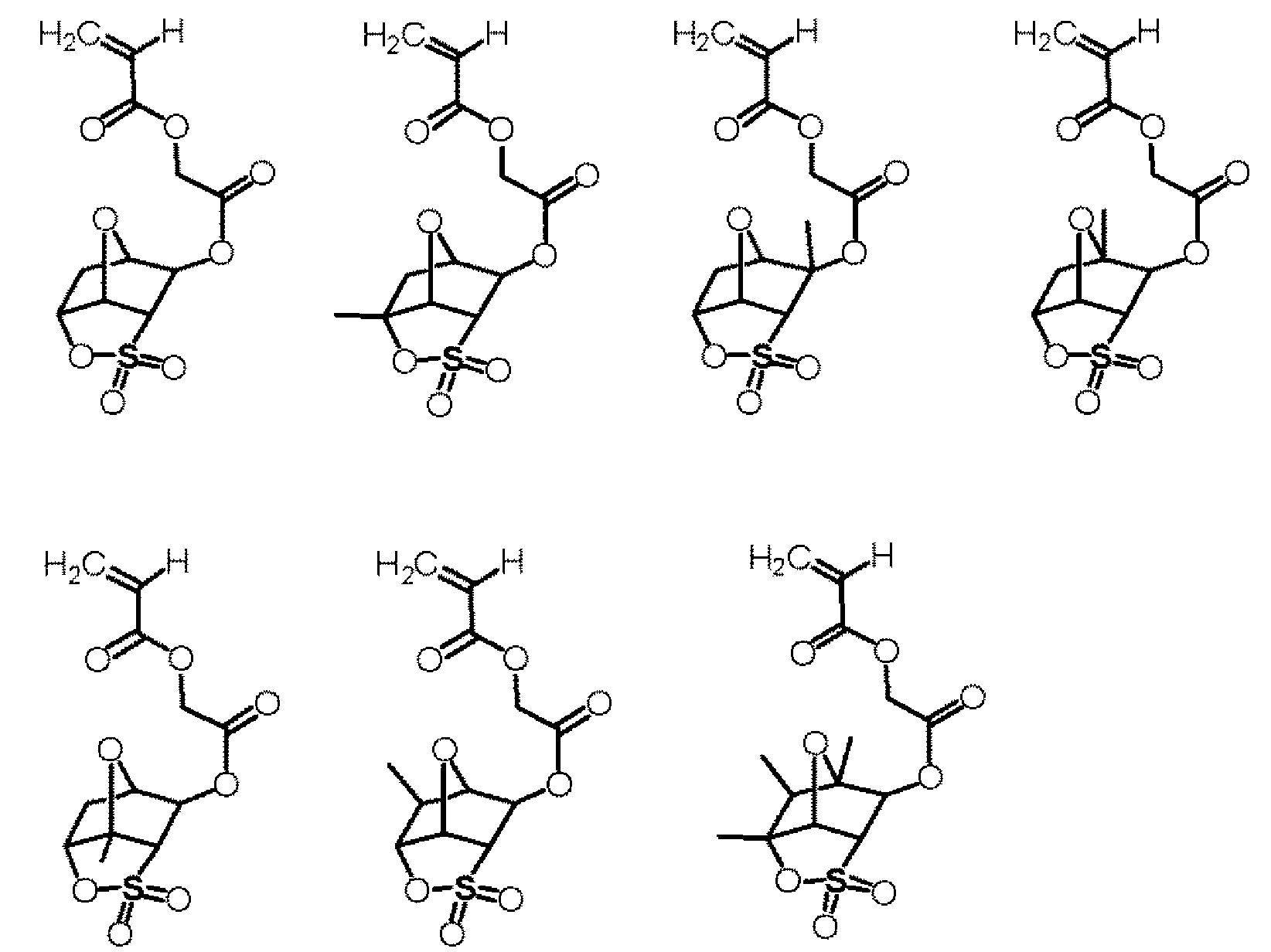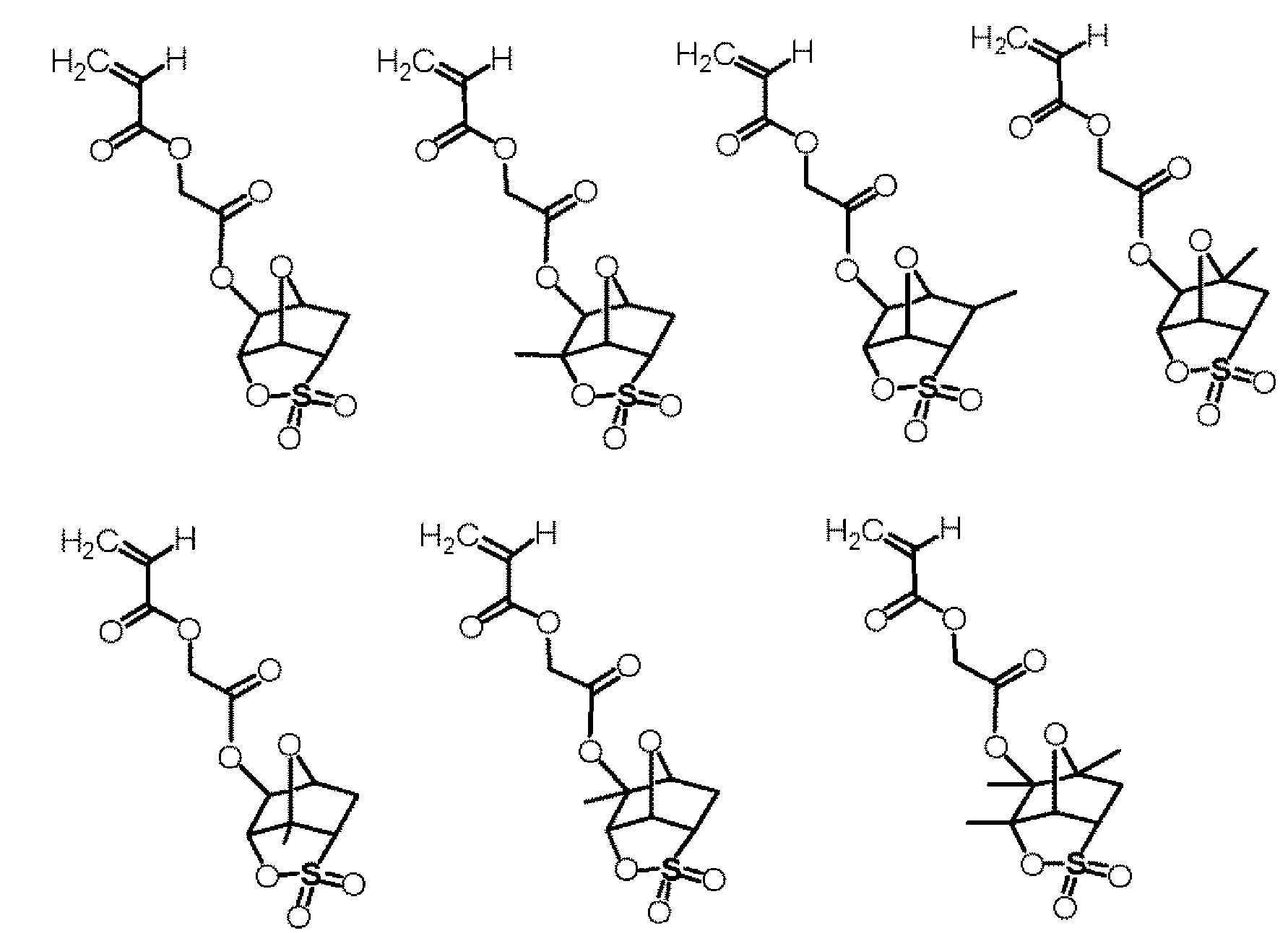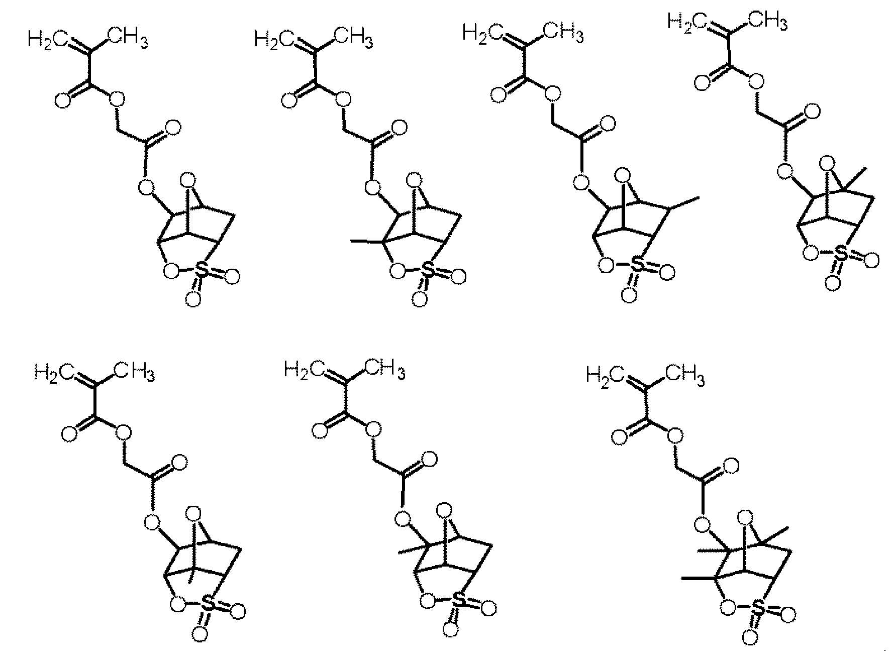 단량체 (A), 단량체 (B) 및 단량체 (C)를 몰비 단량체 (A):단량체 (B):단량체 (C) = 36:34:30으로 함께 혼합하고, 여기에 디옥산을 단량체 총량의 1.5 중량배의 양으로 첨가하여 용액을 얻었다. 얻어진 용액에 아조비스이소부티로니트릴 및 아조비스(2,4-디메틸발레로니트릴)을 개시제로서 단량체 전량에 대하여 각각 1.5 몰% 및 4.5 몰%의 양으로 첨가하고, 얻어진 혼합물을 75℃에서 약 5시간 동안 가열하였다. 그 후, 얻어진 반응 혼합물을 대량의 메탄올과 물의 혼합물에 부어 수지를 침전시켰다. 얻어진 수지를 여과하였다. 이렇게 얻어진 수지를 또다른 디옥산에 용해시켜 용액을 얻고, 용액을 메탄올과 물의 혼합물에 부어 수지를 침전시켰다. 얻어진 수지를 여과하였다. 마지막 두 문장에 기재된 이들 조작을 2회 반복하여, 중량 평균 분자량이 약 5000인 공중합체를 48% 수율로 얻었다. 하기 화학식의 단량체로부터 유도되는 구조 단위를 갖는 이 공중합체를 수지 A7로 하였다.
