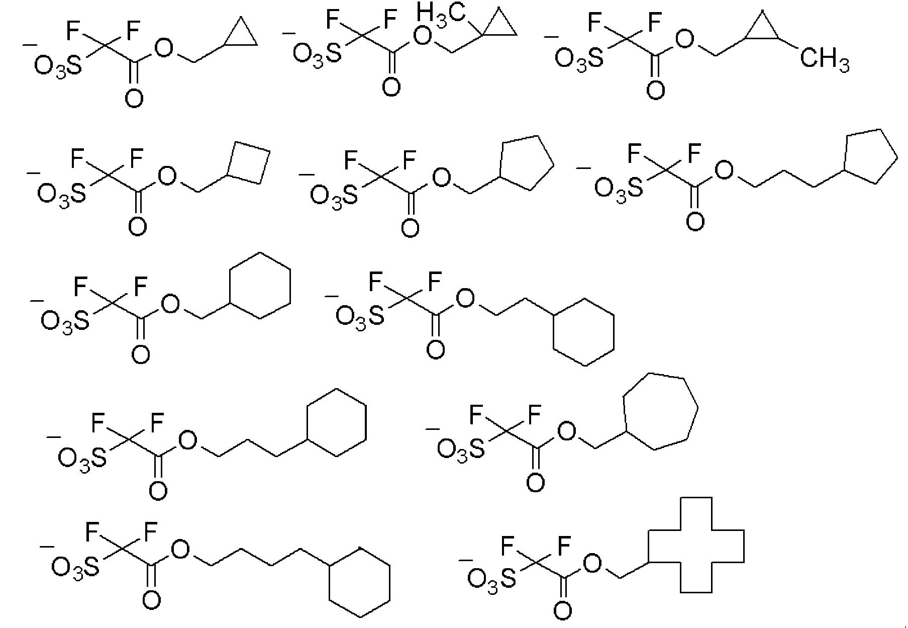 화합물 (a')에서, A13 및 A14는 둘 모두 할로겐 원자를 갖는 기일 수 있으나, 하나의 기만이 할로겐 원자를 갖는 지방족 탄화수소기인 것이 바람직하다. 이들 중, A13만이 할로겐 원자를 갖는 기인 것이 바람직한데, 특히 A13이 불소 원자를 갖는 알칸디일기인 것이 더 바람직하고, A13이 퍼플루오로알칸디일기인 것이 더욱 바람직하다.