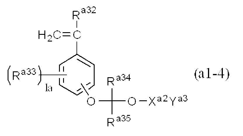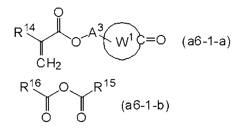 산불안정기를 갖는 단량체는 이하 "단량체 (a1)"로 칭한다. 친수성기가 카르복시기인 경우 산불안정기의 예로는, 카르복시기 (즉, -COOH)의 수소 원자를 유기기로 치환하고 카르복시기의 -O-에 결합한 유기기의 원자가 3급 탄소 원자인 기를 들 수 있다.