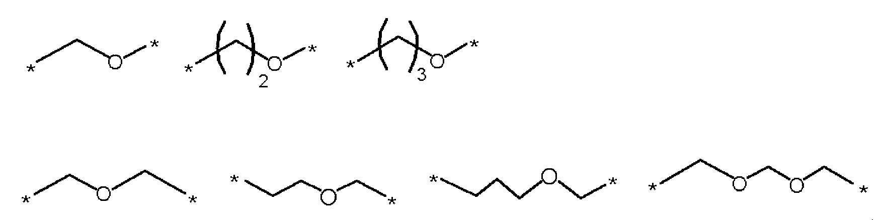 산소 원자를 함유하는 기 (a-g1)의 예로는 하기의 것을 들 수 있다. 하기 화학식에서, 상기 기는 화학식 (a)의 2개의 측기와 부합하도록 나타내는데, 즉 기의 왼쪽은 R1 측의 -O-에 결합하고, 기의 오른쪽은 R2 측의 -O-에 결합하며, *는 결합을 나타낸다.