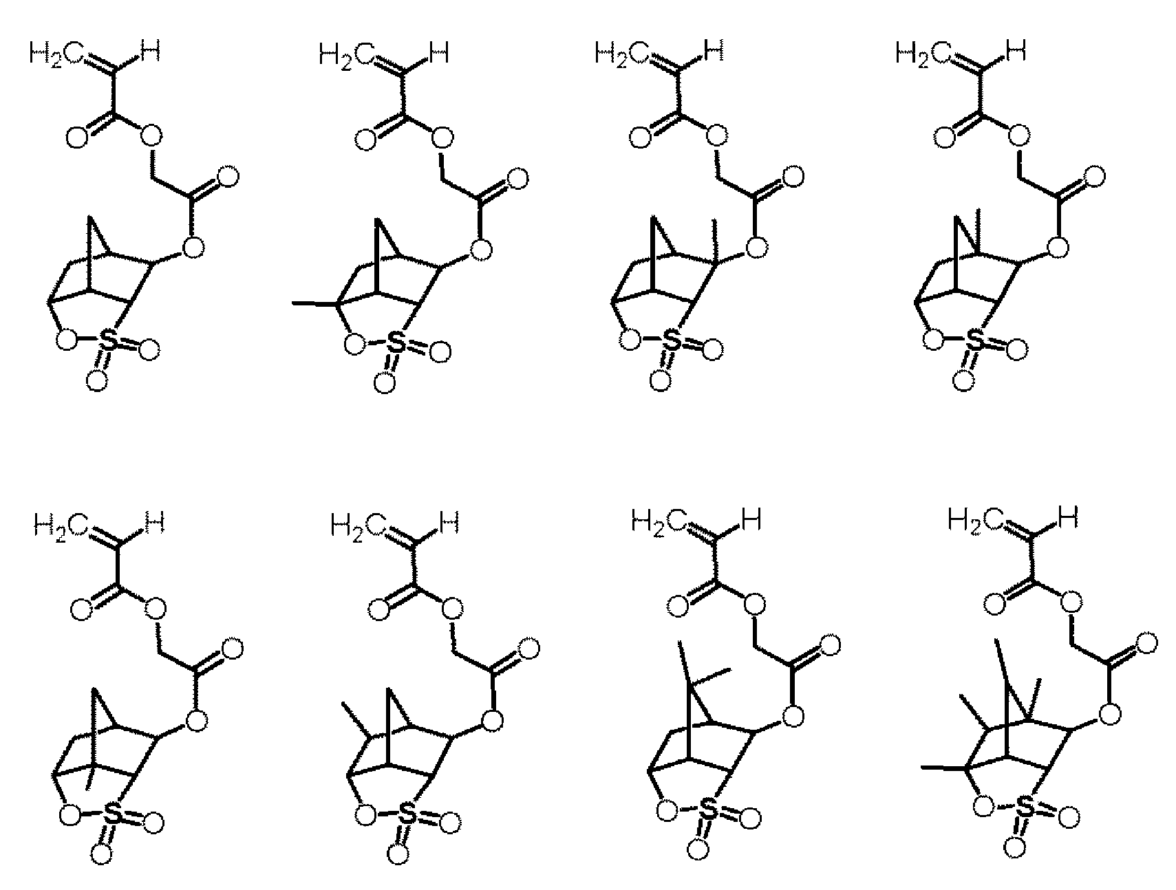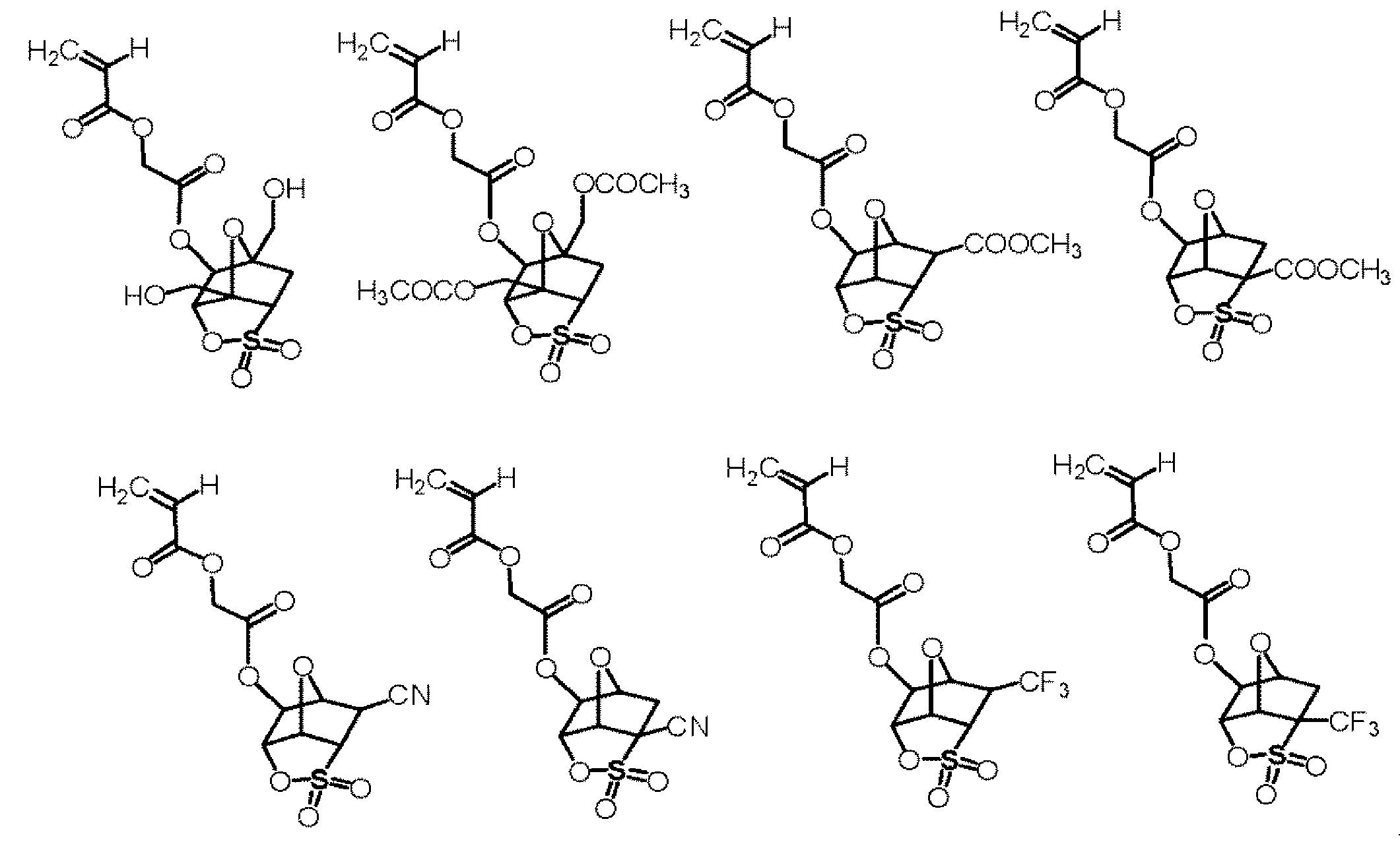 단량체 (B) 및 단량체 (D)를 몰비 단량체 (B):단량체 (D) = 70:30으로 함께 혼합하고, 여기에 디옥산을 단량체 총량의 1.5 중량배의 양으로 첨가하여 용액을 얻었다. 얻어진 용액에 아조비스이소부티로니트릴 및 아조비스(2,4-디메틸발레로니트릴)을 개시제로서 단량체 전량에 대하여 각각 1 몰% 및 3 몰%의 양으로 첨가하고, 얻어진 혼합물을 75℃에서 약 5시간 동안 가열하였다. 그 후, 얻어진 반응 혼합물을 대량의 메탄올과 물의 혼합물에 부어 수지를 침전시켰다. 얻어진 수지를 여과하였다. 이렇게 얻어진 수지를 또다른 디옥산에 용해시켜 용액을 얻고, 용액을 메탄올과 물의 혼합물에 부어 수지를 침전시켰다. 얻어진 수지를 여과하였다. 마지막 두 문장에 기재된 이들 조작을 2회 반복하여, 중량 평균 분자량이 약 6700인 공중합체를 58% 수율로 얻었다. 하기 화학식의 단량체로부터 유도되는 구조 단위를 갖는 이 공중합체를 수지 A8로 하였다.