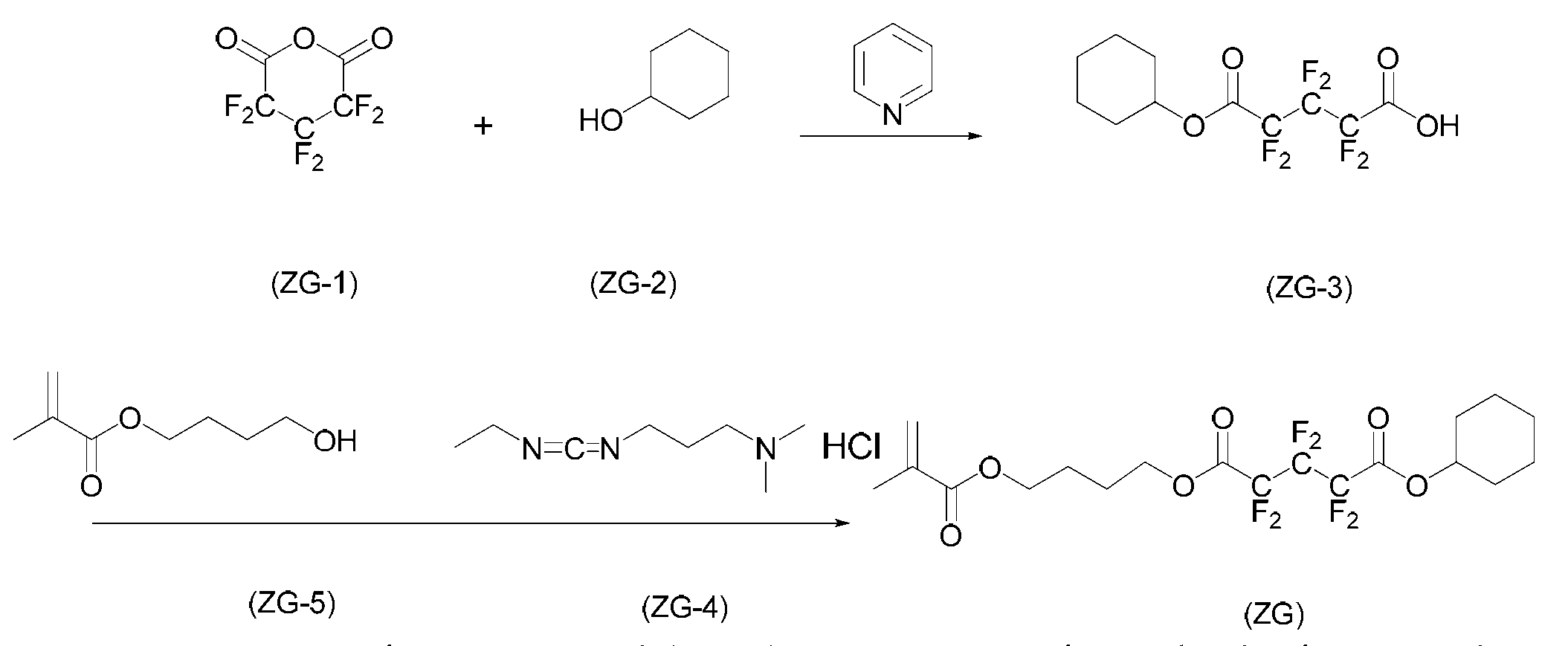 단량체 (ZG)를 사용하고, 여기에 디옥산을 단량체 양의 1.5 중량배의 양으로 첨가하여 용액을 얻었다. 얻어진 용액에 아조비스이소부티로니트릴 및 아조비스(2,4-디메틸발레로니트릴)을 개시제로서 단량체 양에 대하여 각각 0.7 몰% 및 2.1 몰%의 양으로 첨가하고, 얻어진 혼합물을 75℃에서 약 5시간 동안 가열하였다. 그 후, 얻어진 반응 혼합물을 대량의 메탄올과 이온교환수의 혼합물에 부어 수지를 침전시켰다. 얻어진 수지를 여과하였다. 이렇게 얻어진 수지를 또다른 디옥산에 용해시켜 용액을 얻고, 용액을 메탄올과 이온교환수의 혼합물에 부어 수지를 침전시켰다. 얻어진 수지를 여과하였다. 마지막 두 문장에 기재된 이들 조작을 2회 반복하여, 중량 평균 분자량이 약 18000인 중합체를 76% 수율로 얻었다. 하기 화학식의 단량체로부터 유도되는 구조 단위를 갖는 이 중합체를 수지 A33으로 하였다.