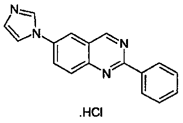 - DOVFPQNKPMPDFJ-UHFFFAOYSA-N 6-imidazol-1-yl-2-phenylquinazoline;hydrate;dihydrochloride Chemical compound O.Cl.Cl.C1=NC=CN1C1=CC=C(N=C(N=C2)C=3C=CC=CC=3)C2=C1 DOVFPQNKPMPDFJ-UHFFFAOYSA-N 0.000 claims description 10