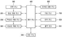 상기 특징점 집합은, 상기 복수의 특징점들 사이의 방향 벡터, 및 방향각으로 구성된 특징점 집합 정보를 구비하고, 상기 방향각은, 각 특징점의 방향과 상기 방향 벡터가 이루는 각이다. 도 7a 또는 도 7b를 참조하면, 상기 방향 벡터는, 특징점 (x1,i, y1 ,i)에서 (x1,j, y1 ,j)로의 벡터, 특징점 (x2,i, y2 ,i)에서 (x2,j, y2 ,j)로의 벡터, 또는 특징점 (x'2,i, y'2 ,i)에서 (x'2,j, y'2 ,j)로의 벡터를 나타낸다. 또한, 상기 방향각은, 도 7a 또는 도 7b에서의 θ 또는 θ'가 된다. 이때, 제어 유닛(400)은, 상기 방향 벡터, 및 상기 방향각의 변화를 근거로 상기 특징점을 정합한다. 제어 유닛은, 예를 들어, 상기 방향 벡터의 길이 변화가 일정 변위 이하이고, 상기 방향각의 변화가 없거나, 그 차이가 일정 각 이하인 경우에 특징점을 정합한다.The feature point set includes feature point set information including a direction vector and a direction angle between the plurality of feature points, and the direction angle is an angle formed between the direction of each feature point and the direction vector. Referring to FIG. 7A or 7B, the direction vector is a vector from a feature point (x 1, i , y 1 , i ) to (x 1, j , y 1 , j ), and a feature point (x 2, i , y 2 , i ) to (x 2, j , y 2 , j ) or a vector from feature points (x ' 2, i , y' 2 , i ) to (x ' 2, j , y' 2 , j ) Indicates. In addition, the said direction angle becomes (theta) or (theta) 'in FIG. 7A or 7B. At this time, the