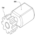 도 6은 발전기(800)와 발전기(800)의 축에 고정되어 있는 작은 톱니기어(700)의 개략도.