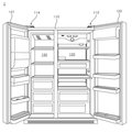 FIG. 2 is a front view showing a state where the door of the refrigerator shown in FIG. 1 is opened;