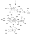 상기한 구성에서, 상부레버(510)는 외주면에 상부 작동돌기(513)이 형성되고, 측면에 핀 삽입공(512a)이 형성된 연결채널(512)이 형성된다. 또한 볼트(B)가 체결되기 위한 상부 고정부(514)가 형성되고 중심에는 관통공(515)이 형성된다. In the above configuration, the