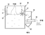 타 측방에 상기 부유물 이동수단(50)에 의해 타 측방으로 이동하는 부유물을 구동수단(미도시)에 의해 전후 회전하는 회전체(56)의 회전익(57)에 의해 세척조(30)에 인접하여 마련된 부유물 수거조(60)로 오버시켜 부유물을 수거하는 부유물 수거수단(55)으로 구성된다.(Not shown) of the rotating