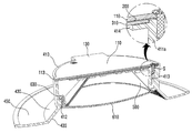 제1 바디(410’)는, 커버부(100’)의 커버(110’)와 리벳 또는 나사와 같은 체결 수단(S)에 의해 서로 결합될 수 있다. 체결 수단(S)이 커버(110’)의 홀(115)을 관통하여 제1 바디(410’)의 체결부(413’)에 삽입됨으로써, 제1 바디(410’)와 커버(110’)는 결합될 수 있다.