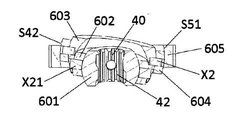 - F16D3/42—Hooke's joints or other joints with an equivalent intermediate member to which each coupling part is pivotally or slidably connected with a single intermediate member with trunnions or bearings arranged on two axes perpendicular to one another with ring-shaped intermediate member provided with bearings or inwardly-directed trunnions