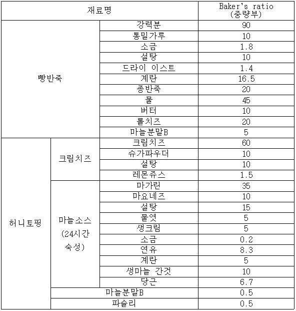 | KR20210019686A (en) * | 2019-08-13 | 2021-02-23 | 신재훈 | Garlic bread with various cream and preparation method thereof |