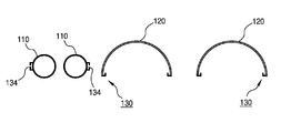 또한, 상기 추진 강관(120)은 도 5 내지 도 8표시와 같이 반원 형상으로 분할된 상태로 형성될 수 있다. 이때, 반원 형상으로 분할된 단부에 가이드 앵글(130)로서 결합돌부(132) 혹은 결합홈부(134)가 설치될 수 있으며, 도 5 내지 도 7에는 상기 가이드 앵글(130)의 형상 모양에 차이점이 있는 것을 도시한 것이고, 도 8은 상기 추진 강관(120)에 가이드 앵글이 설치되지 않고 반원 형상으로만 분할되게 형성되어 있는 것을 도시한 것이다. Also, the propelling