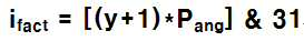 인트라 방향 파라미터에 기초하여, 예측 대상 샘플을 예측하는데 이용되는 적어도 하나의 참조 샘플을 특정하기 위한 참조 샘플 결정 인덱스 iIdx를 유도할 수 있다. 또한, 인트라 방향 파라미터를 기초로 각 참조 샘플에 적용되는 가중치를 결정하는데 이용되는 가중치 관련 파라미터 ifact를 유도할 수 있다. 일 예로, 하기 수학식 7 및 8은 참조 샘플 결정 인덱스 및 가중치 관련 파라미터를 유도하는 예를 나타낸 것이다.
