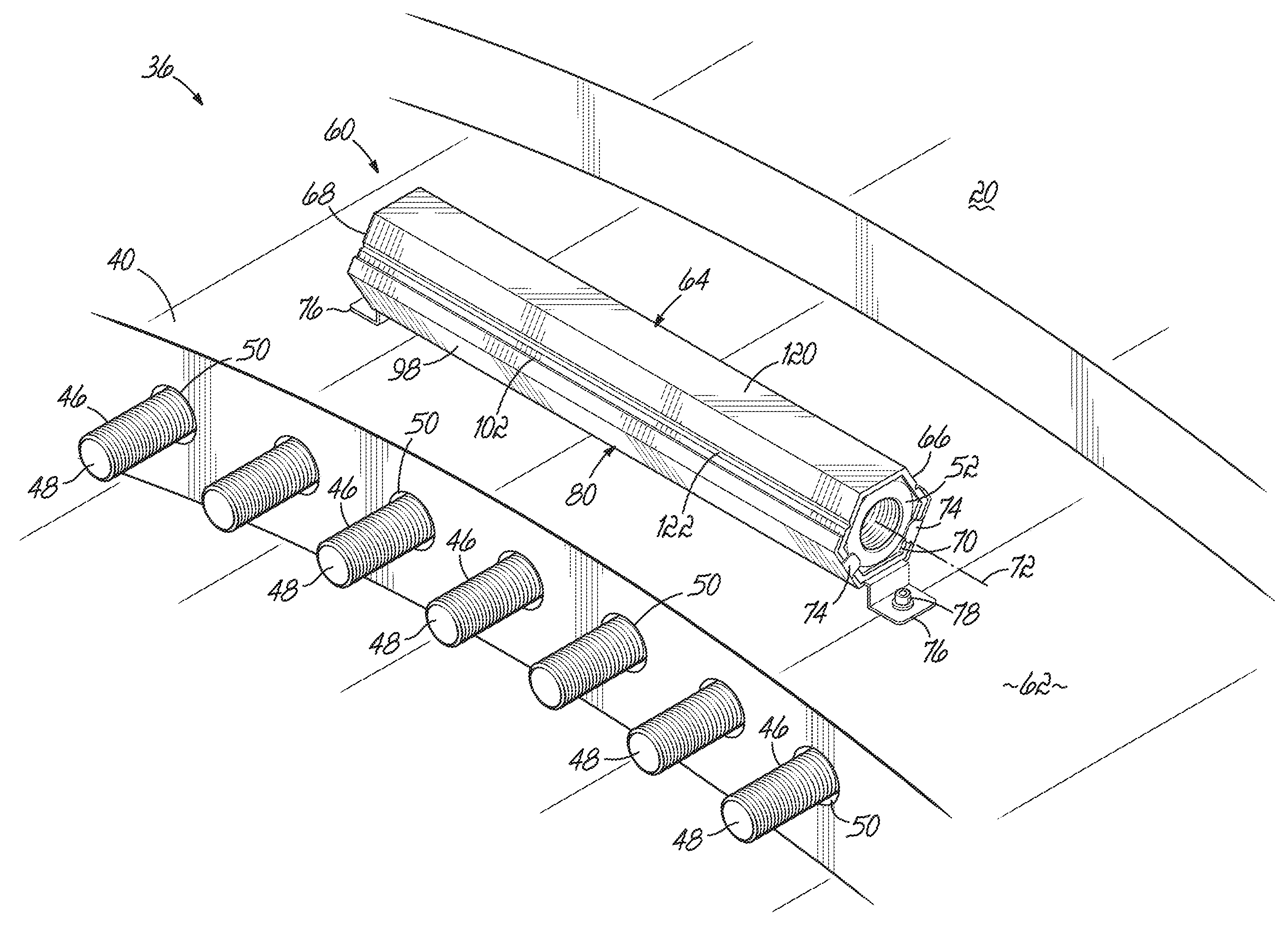 현재의 회전자 허브는 전형적으로 회전자 허브의 구조적 측면을 제공하고 피치 베어링 및 회전자 블레이드가 부착되는 내부 허브 프레임과, 일반적으로 스피너로 지칭되며 상기 허브 프레임을 둘러싸는 외부 커버를 포함한다. 상기 스피너는 일반적으로 허브 프레임 및 관련 구성 요소를 보호하고 회전자의 중앙 영역에서 회전자에 보다 미적이고 공기 역학적인 구성을 제공한다. 따라서, 피치 베어링의 외측 링에 접근하기 위해, 기술자는 통상적으로 허브 프레임과 스피너 사이의 상대적으로 한정된 공간에 자신을 배치할 것이다. 이와 관련하여 기술자는 너트와 같은 상대적으로 무거운 패스너(예 : 주머니 또는 가득찬 주머니) 중 하나 또는 몇 개를 잡고, 허브 프레임의 접근 구멍을 통해 허브 프레임과 스피너 사이의 공간의 허브 프레임 외부에 자신을 배치하여, 너트를 나사형 스터드 볼트에 고정하게 된다. 기술자에 대한 제한된 너트 공급량이 고갈되면, 기술자는 허브 프레임과 스피너 사이의 공간을 빠져 나가 허브의 내부(즉, 허브 프레임의 내부)로 다시 들어가고, 다른 너트 꾸러미를 재공급 받은 후, 허브 프레임과 스피너 사이의 공간으로 다시 올라가 너트를 스터드 볼트에 고정하게 된다. 이 과정은 현재의 블레이드 설계에 있어서, 180-200개의 볼트만큼 많은 스터드 볼트가 너트로 고정될 때까지 반복된다.Current rotor hubs typically include an inner hub frame, which provides structural aspects of the rotor hub and to which pitch bearing and rotor blades are attached, and an outer cover, generally referred to as a spinner, that surrounds the hub frame. The spinner generally protects the hub frame and associated components and provides a more aerodynamic and aerodynamic configuration to the rotor in the central region of the rotor. Thus, to approach the outer ring of the pitch bearing, the technician will typically place himself in a relatively confined space between the hub frame and the spinner. In this regard, the technician may grab one or several of the relatively heavy fasteners (eg, pockets or full pockets) such as nuts and place themselves in the hub frame of the space between the hub frame and the spinner through the access holes in the hub frame And the nut is fixed to the threaded stud bolt. If the limited nut supply to the technician is depleted, the technician will escape the space between the hub frame and the spinner and back into the interior of the hub (i.e., the interior of the hub frame), re-supply the other nut package, So that the nut is fixed to the stud bolt. This process is repeated for the current blade design until as many as 180-200 bolts of stud bolts are secured with the nuts.