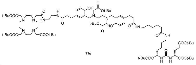 지난 몇 년간, [68Ga]Glu-NH-CO-NH-Lys(Ahx)-HBED-CC (단량체, [68Ga]1a) 및 이의 이량체, [68Ga](Glu-NH-CO-NH-Lys(Ahx))2-HBED-CC가 성공적으로 제조되었고 높은 PSMA 결합을 나타내었다(도식 5). 비록 [68Ga]Glu-NH-CO-NH-Lys(Ahx)-HBED-CC (단량체) 및 [68Ga](Glu-NH-CO-NH-Lys(Ahx))2-HBED-CC (이량체) 두 가지가 모두 필적하는 전임상 데이터를 나타내었음에도, 현재, 인간에게 성공적으로 적용된 가장 대중적인 PSMA/PET 영상화제는 [68Ga]Glu-NH-CO-NH-Lys(Ahx)-HBED-CC이다. Eder M, 등, Bioconjug. Chem. 23:688-97 (2012)을 참조하라.Over the years, [68 Ga] Glu-NH -CO-NH-Lys (Ahx) -HBED-CC ( monomer, [68 Ga] 1a) and its dimer, [68 Ga] (Glu- NH-CO-NH -Lys (Ahx)) 2 -HBED-CC was successfully prepared and showed high PSMA binding (Scheme 5). Although [68 Ga] Glu-NH- CO-NH-Lys (Ahx) -HBED-CC ( monomer) and [68 Ga] (Glu-NH -CO-NH-Lys (Ahx)) 2 -HBED-CC ( dimer The most popular PSMA / PET imaging agents successfully applied to humans nowadays are [ 68 Ga] Glu-NH-CO-NH-Lys (Ahx) -HBED- CC. Eder M, et al . , Bioconjug. Chem. 23: Refer to 688-97 (2012).