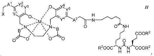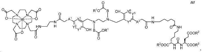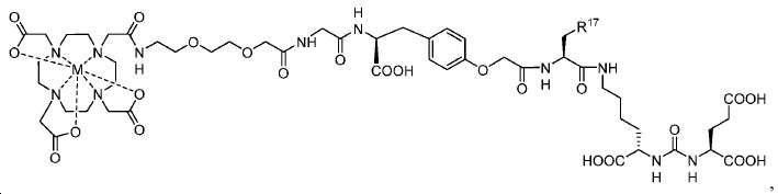 생체 내 영상화 및 방사선 요법을 위한 PSMA 저해제로서 Glu-NH-CO-NH-Lys(Ahx)-HBED-CC 아미드 유도체를 추가로 향상하고자 하는 요구가 계속 존재한다.There is a continuing need to further improve the Glu-NH-CO-NH-Lys (Ahx) -HBED-CC amide derivatives as PSMA inhibitors for in vivo imaging and radiotherapy.