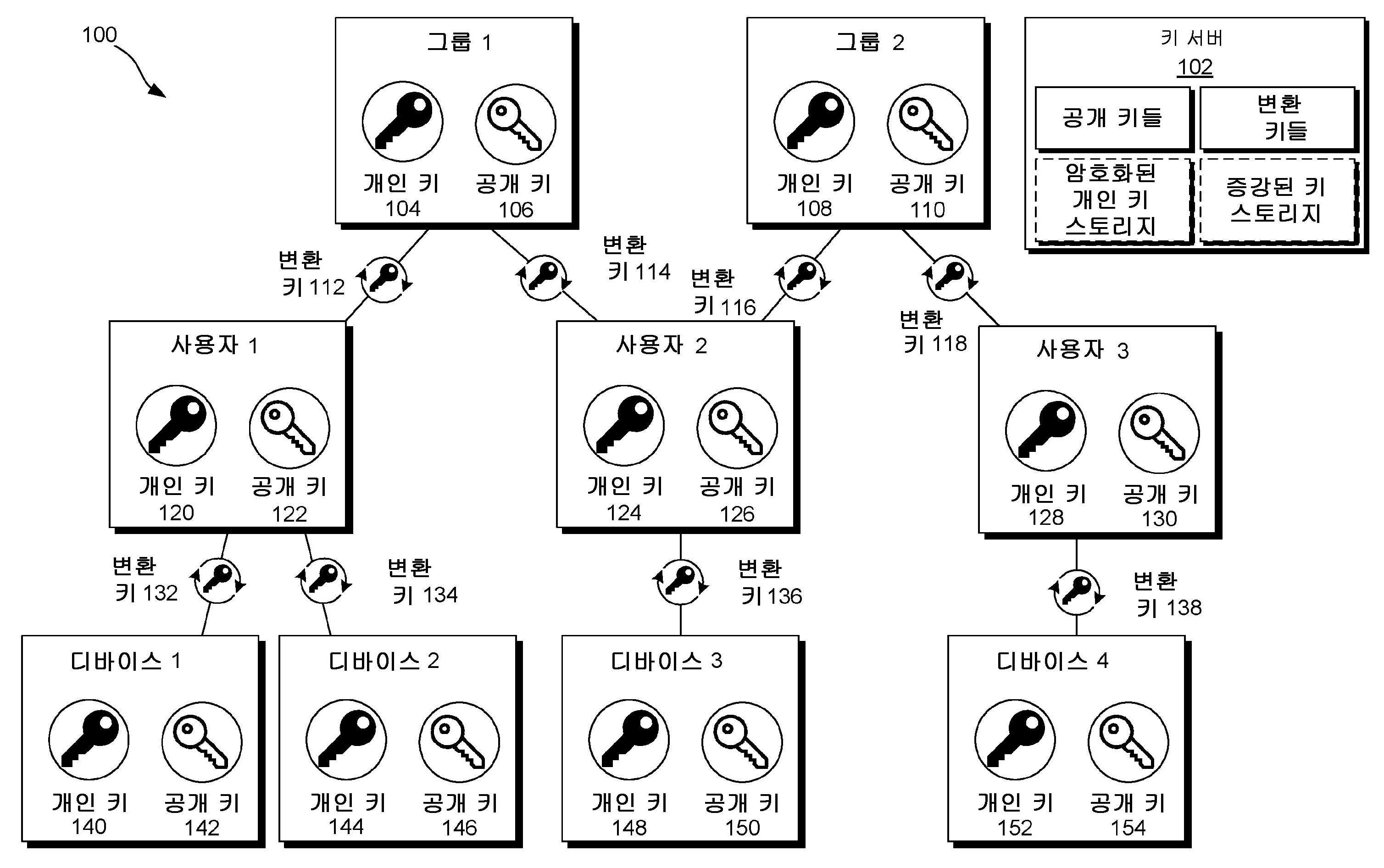 본 특허출원은 2017년 4월 28일 출원된 "TRANSFORM CRYPTOGRAPHY FOR GROUP-BASED MULTI-HOP ENCRYPTION" 라는 제목의 미국 가 출원 제 62/491982 호에 대한 우선권을 주장하고, 이 출원은 본 발명의 양수인에게 양도되고 본원에 참조에 의해 명시적으로 통합된다.This patent application claims priority to U.S. Provisional Application No. 62/491982 entitled "TRANSFORM CRYPTOGRAPHY FOR GROUP-BASED MULTI-HOP ENCRYPTION" filed April 28, 2017, and this application is filed with the assignee of the present invention. Assigned and incorporated herein by reference.