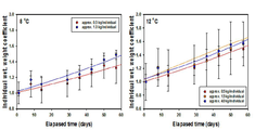 도 8은 본 발명의 실험예에 따른 8℃와 12℃의 각 수온별 축양에 따른 문어의 성장 결과를 나타낸다.