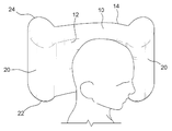 a headrest 10 having a predetermined thickness between the upper and lower surfaces 12 and 14;