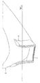 도 2는, 그 위에 장착되어 있는 본 발명의 유체역학적 덕트를 갖춘 선박 선수의 일 부분에 관한 사시도이고, 여기에서 덕트는 하측 수평방향 벽 부위, 상측 수평방향 벽 부위, 및 수선 위에 뻗어 있는 것으로 나타나 있는 측면방향 벽 부위들로 이루어져 있다.