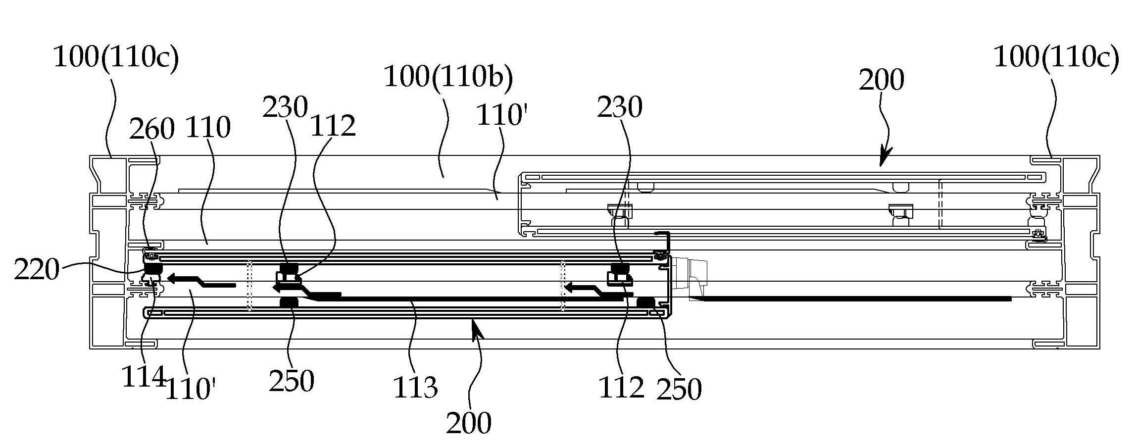 a mounting bracket 211 installed in the rail groove of the window pair 200 facing the rail 100 ′;