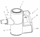 특히, 한국등록특허공보 제10-1127088호에 개시된 핸드헬드 진공 청소기의 상기 기류 생성기는 모터 하우징 내에 위치되며, 모터 및 팬 어셈블리 형태를 가진다. 그리고, 모터 앞쪽에 프리모터 필터가 구비되고, 모터 뒤쪽에 포스트모터 필터가 구비된다.In particular, the airflow generator of the handheld vacuum cleaner disclosed in Korean Patent No. 10-1127088 is located in a motor housing and has a motor and fan assembly shape. In addition, a pre-motor filter is provided in front of the motor, and a post-motor filter is provided in the rear of the motor.