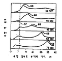 - 제12항에 있어서, 전기한 커어브의 주기적 변화는 10초 미만의 시간간격으로 발생하는 것을 특징으로 하는 연속주조중 용융금속 브레이크아우트의 가능성을 예측하는 방법.